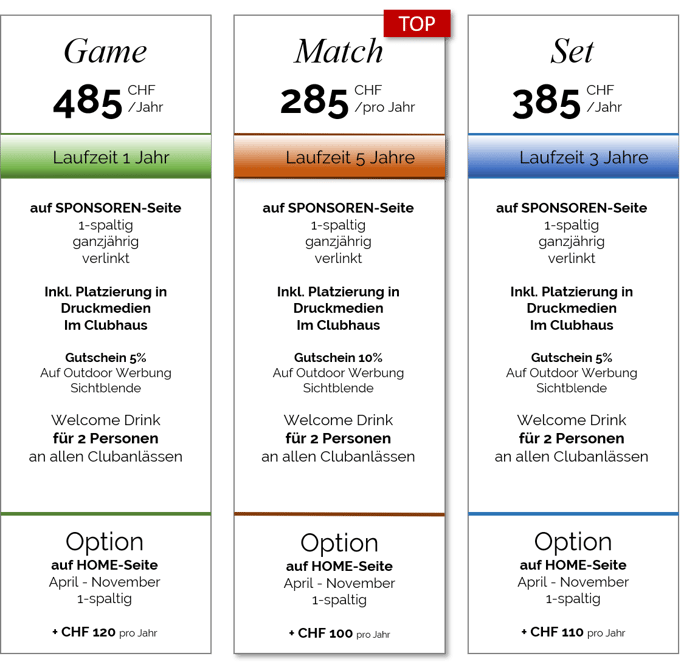 Inkl. Platzierung in Druckmedien und im Clubhaus